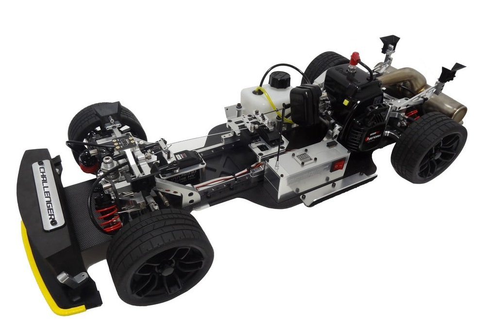The Primal RC Challenger is a true 1/5 scale RC version of the real thing. It’s outfitted with an officially-licensed Dodge Widebody Challenger body, rear-wheel drive layout, accurate scale “Devil’s Rim” wheels with belted tires, and a realistic lighting system.