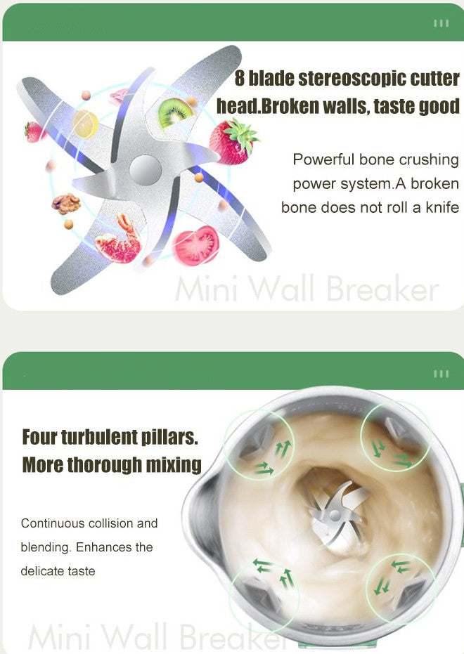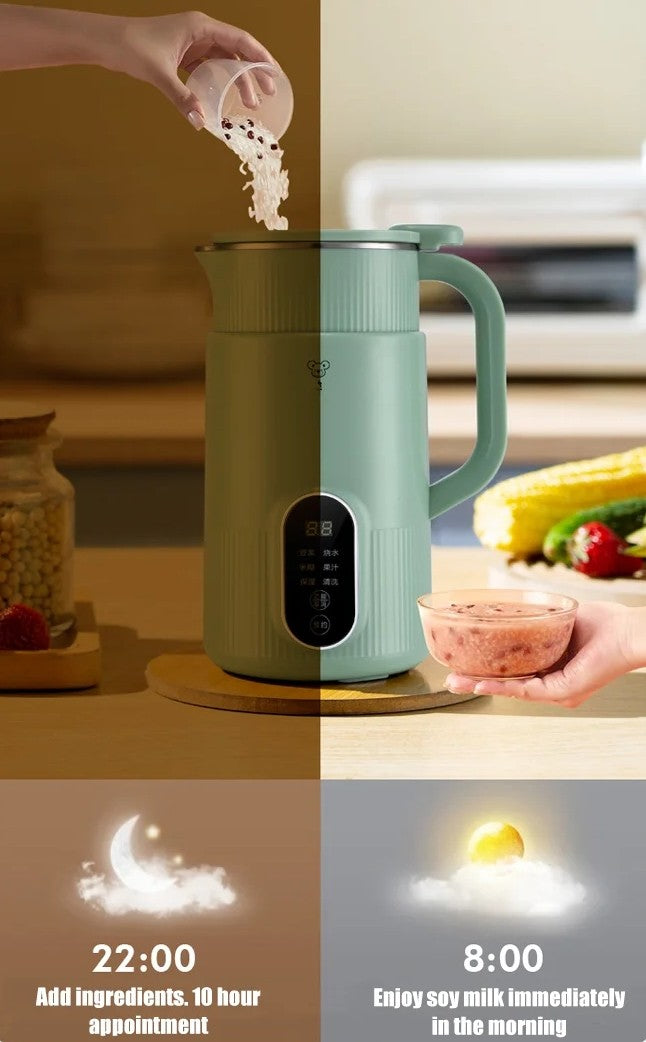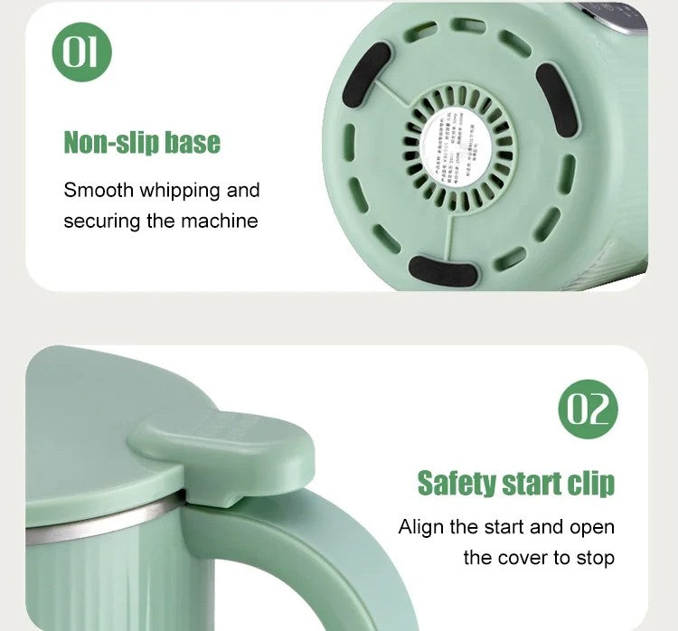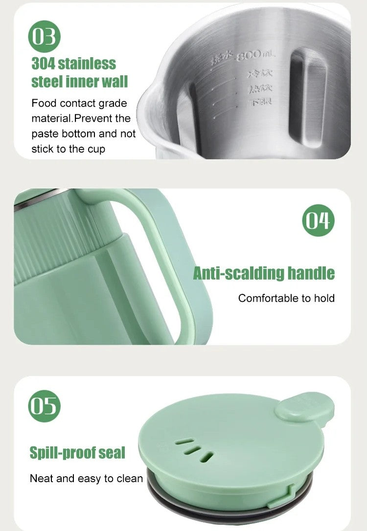 Strong Filter-free Soy Milk Maker Machine - This machine has a powerful motor of approximately 25000 rpm, and is equipped with 8 precision steel blades. It is also equipped with a 4-rib three-dimensional spiral turbulence. This ensures that the soy milk is smooth and slag-free, without the need for filtering, and it operates very quietly.