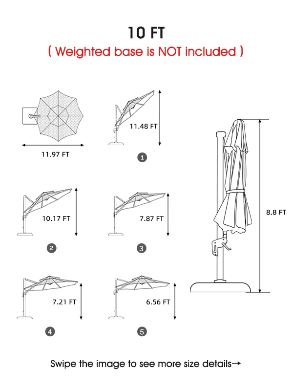With the patio umbrella, you can enjoy your outdoor life, whether it's dark or sunny. Start your wonderful outdoor life!