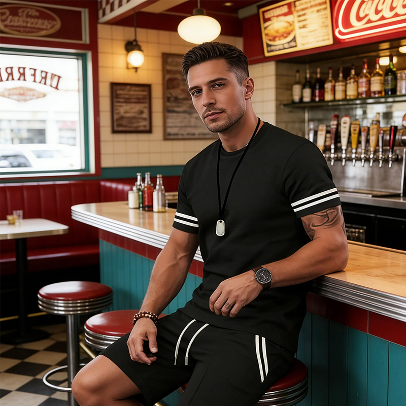 COORDINATED TWO-PIECE SET - Eliminates guesswork in styling. This matching T-shirt and shorts combo provides a cohesive, put-together look effortlessly, ensuring you appear sharp and fashionable with minimal effort for any casual occasion.