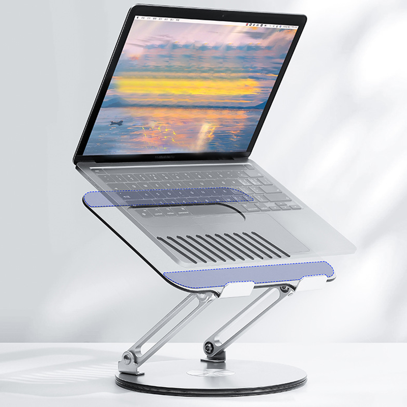 DEVICE PROTECTION - Equipped with soft, anti-slip silicone pads, this stand securely grips your laptop or tablet while preventing scratches and accidental slips. Your valuable electronics are safeguarded from damage.