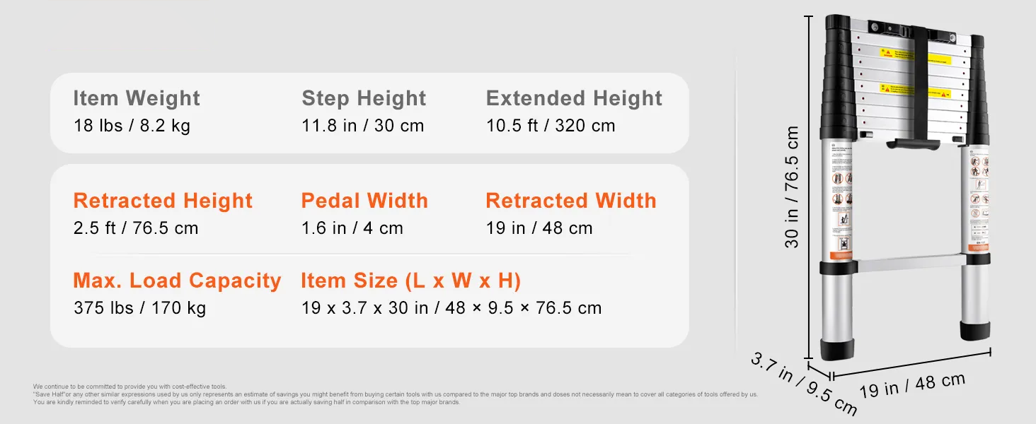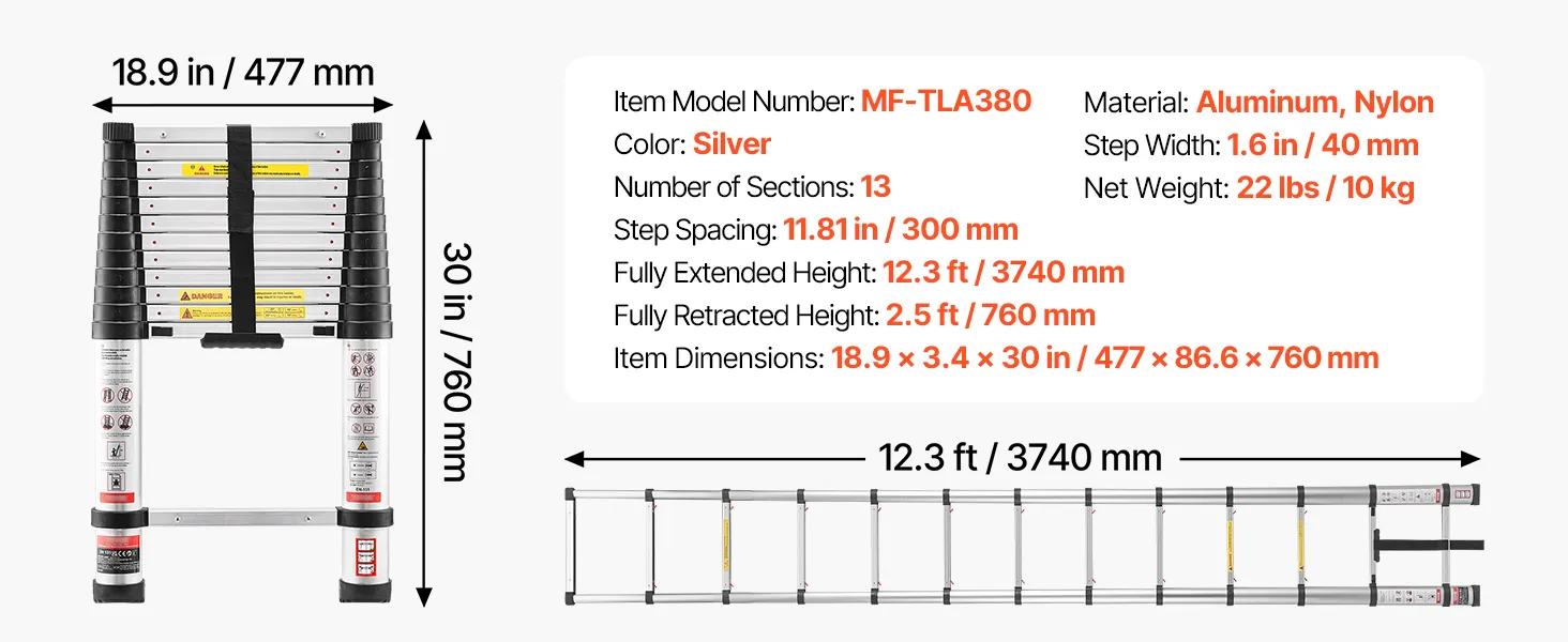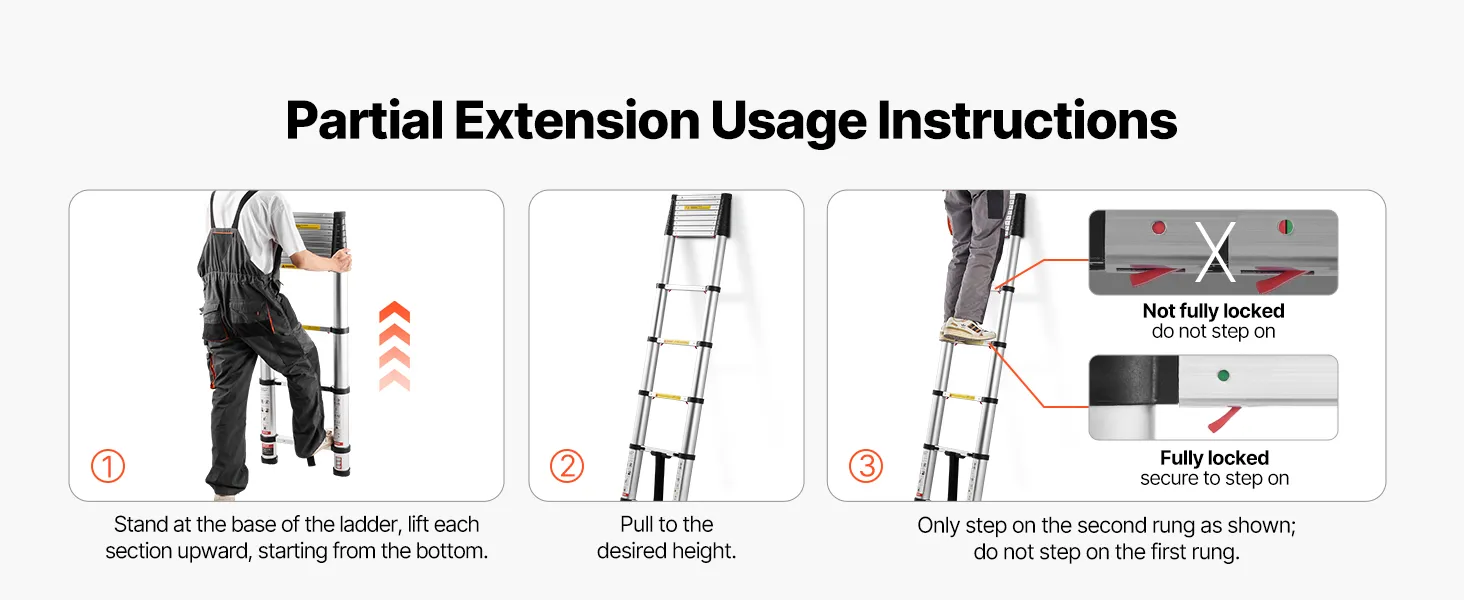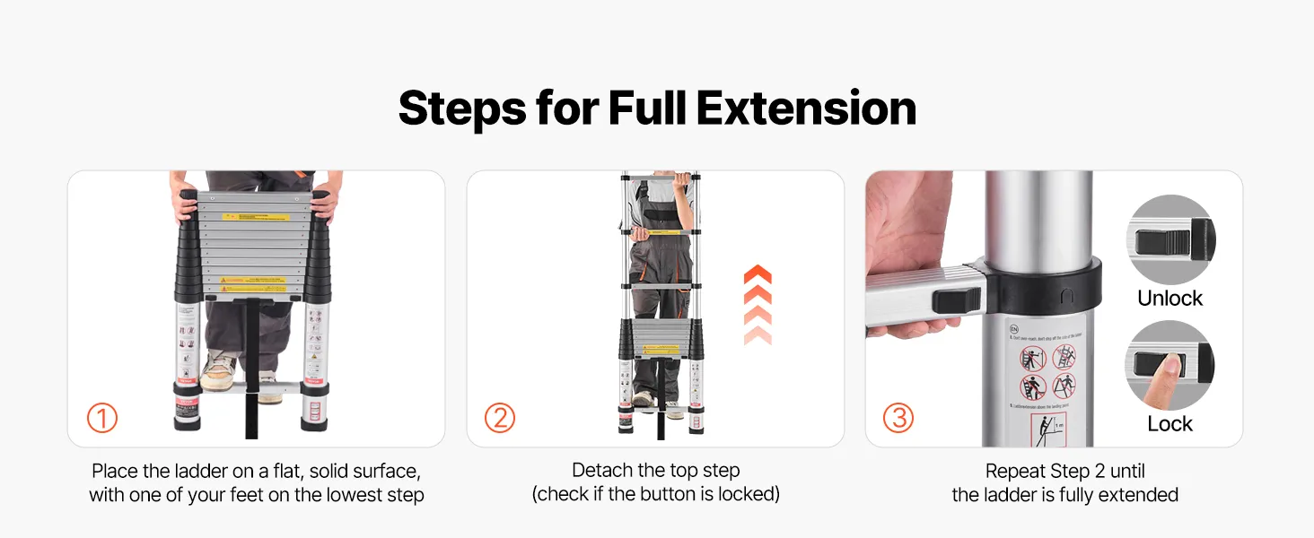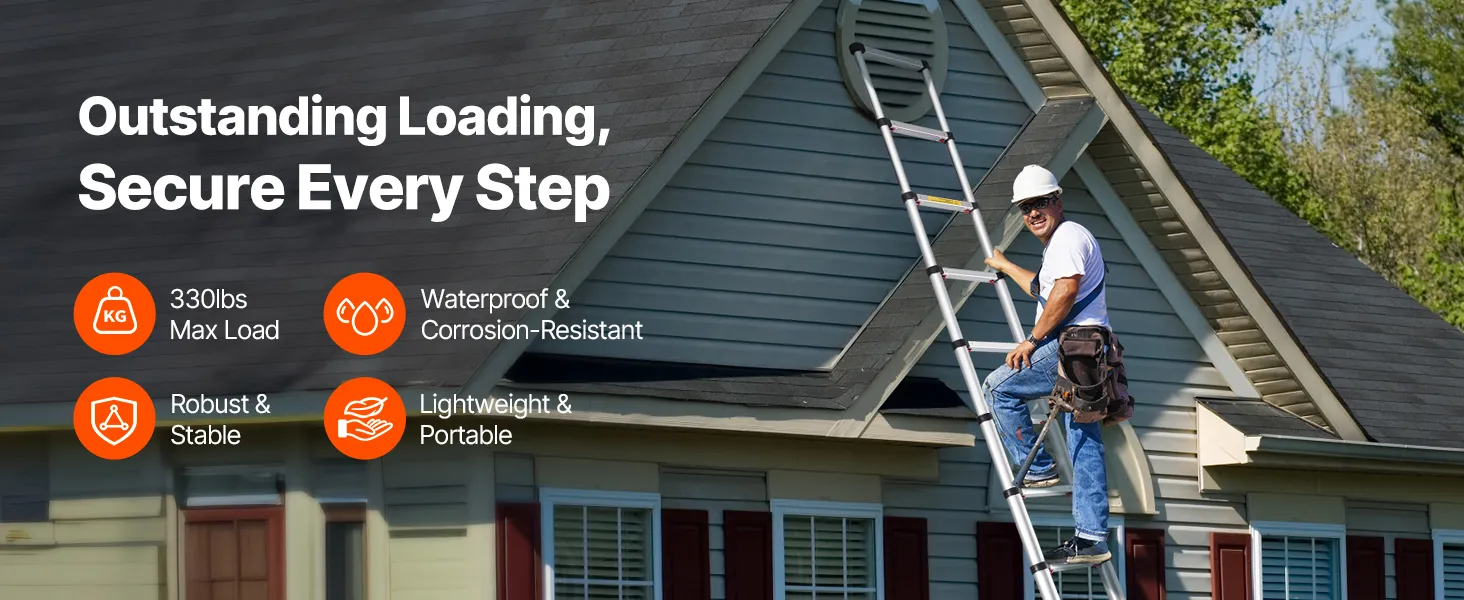 • Superior Load Capacity: telescoping ladder is professionally crafted from an aviation-grade aluminum alloy. The plastic interface components are reinforced, making it difficult to break. Do not climb the ladder quickly; always ensure security while using it