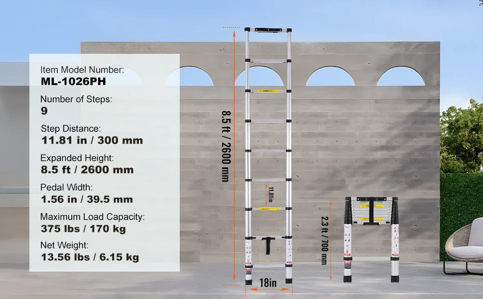 • Sturdy and Long-lasting: Our telescoping ladder is made from tough aluminium for added strength and durability, supporting up to 330 lbs / 150 kg(75°). Note: Use the ladder at a 75-degree angle; weight capacity decreases as the angle lowers