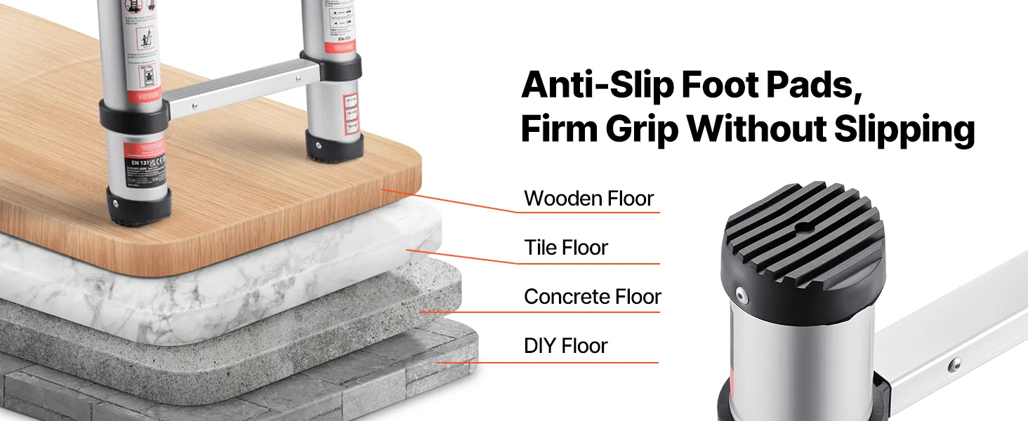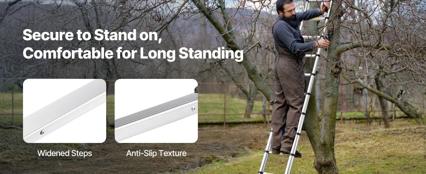 • Widened Steps: The steps of this extension ladder have been expanded to 1.5 inches for a more comfortable and stable standing surface. This helps reduce fatigue during long periods of standing, making it easier to complete high-altitude tasks