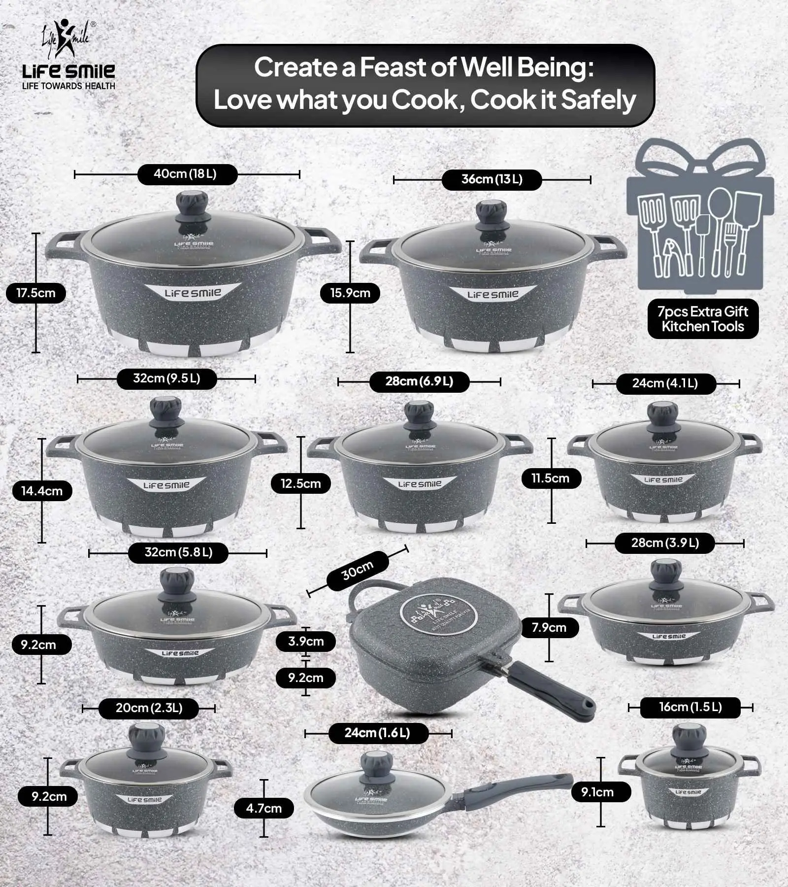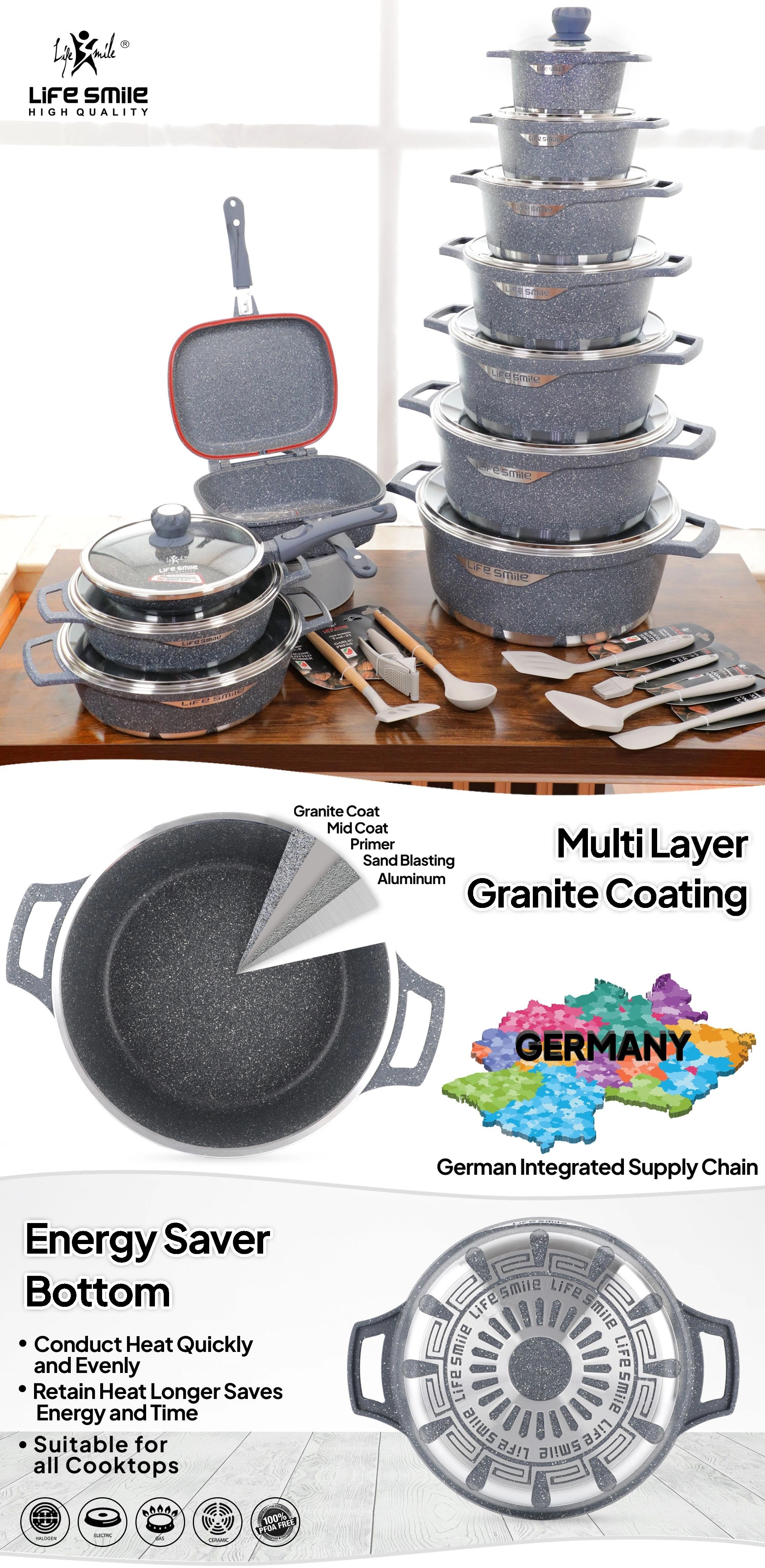 Calling all culinary enthusiasts, aspiring chefs, and those who desire to transform their kitchens into havens of delicious creations! The 29-Piece Non-Stick Multi-Layer Granite Coating Cookware Set is more than just a set of pots and pans; it's a gateway to culinary exploration, a symbol of your passion for cooking, and a testament to your appreciation for quality and craftsmanship. 🍳