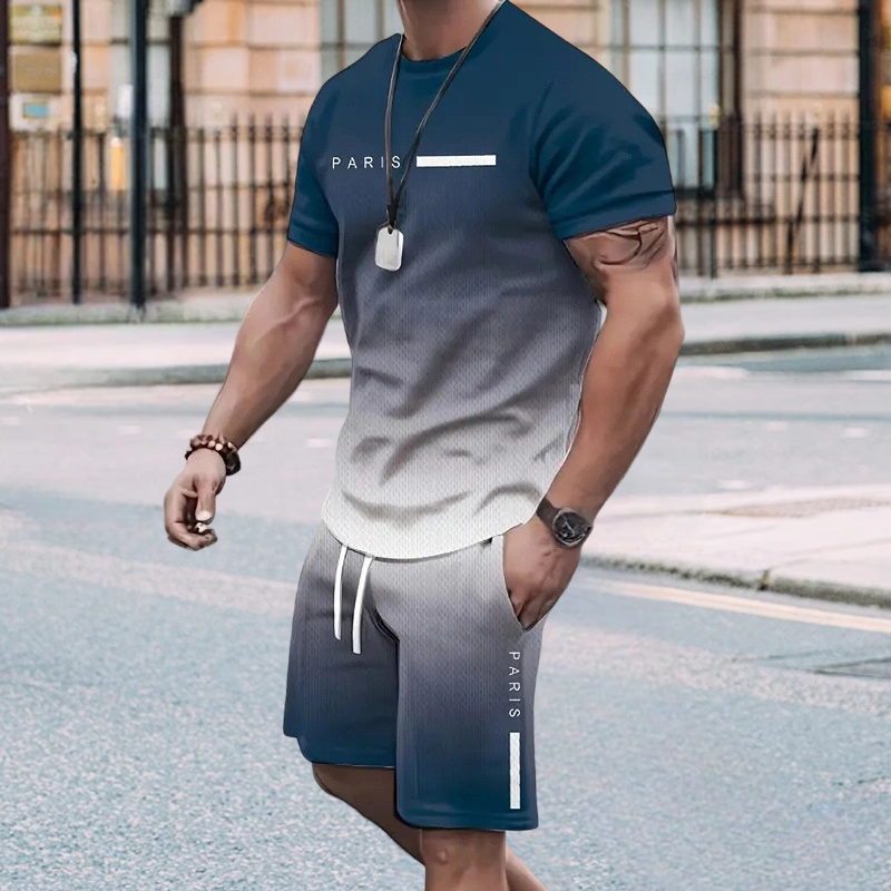 Men's Gradient Color T-Shirt & Shorts Set
