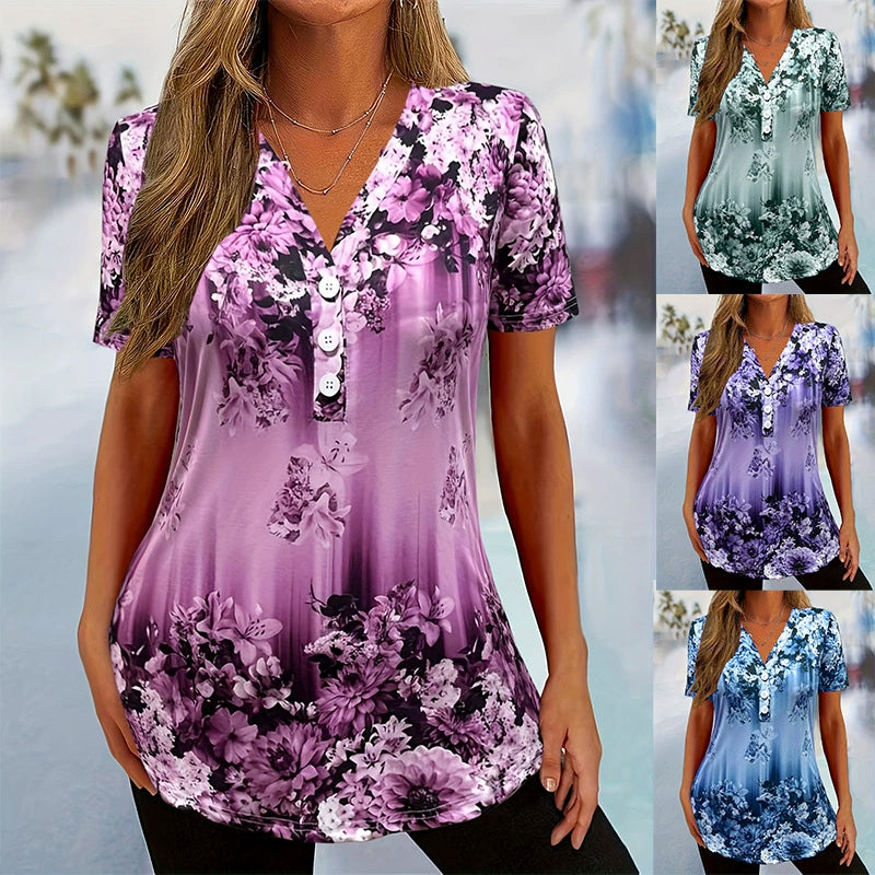 Women's Elegant Floral Printed Short Sleeve Top