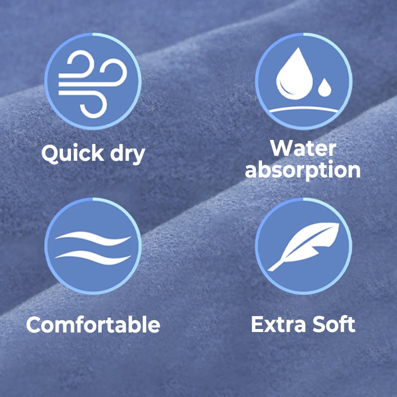 Ultra fine fibers, very absorbent and dry quickly, soft and comfortable to lie on, quickly wipe off the moisture on the surface of the body, and the material is not easy to stick to sand, can quickly shake off the sand. It provides a cover for community swimming pools or beach lounges, the lounge chairs so no burning skin from the hot!