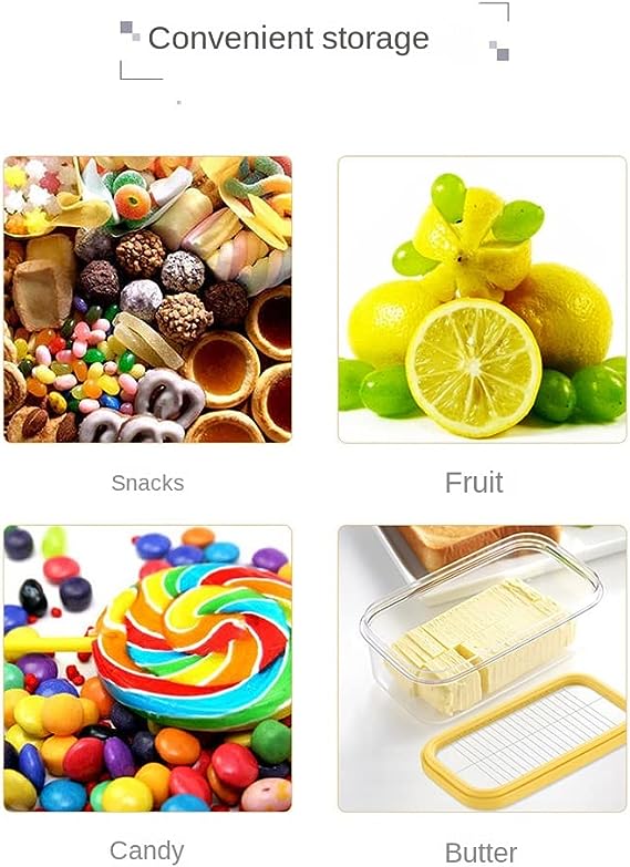 Multifunctional storage:This butter box can be used to store not only butter but also snacks, fruits, candies, and more. It's very practical.