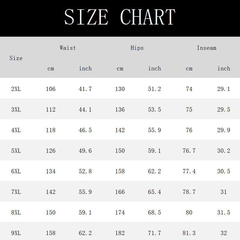 Size: 2XL, 3XL, 4XL, 5XL, 6XL, 7XL, 8XL, 9XL