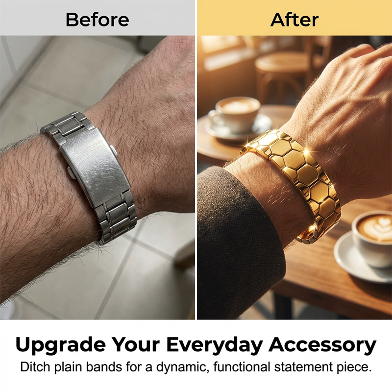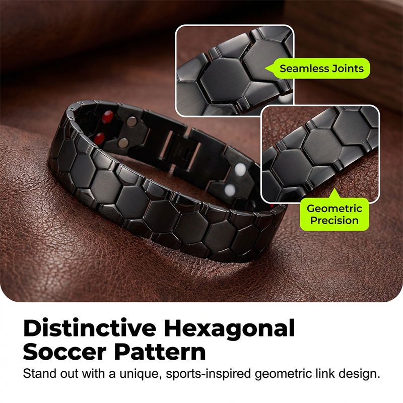 DISTINCTIVE HEXAGONAL SOCCER PATTERN - Celebrate your passion for the game. The meticulously crafted hexagonal links mimic a classic soccer ball, offering a bold, masculine aesthetic that catches the eye instantly.