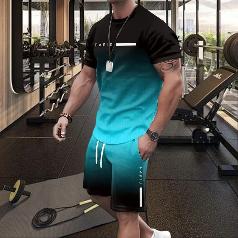 Men's Gradient Color T-Shirt & Shorts Set