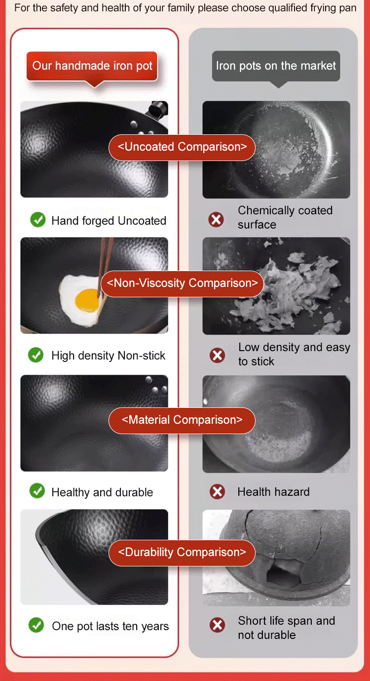 RUST-RESISTANT - We've solved the problem of rusting commonly found in traditional iron skillets. Our skillet undergoes a high-temperature nitriding process, forming a rust-resistant layer.
