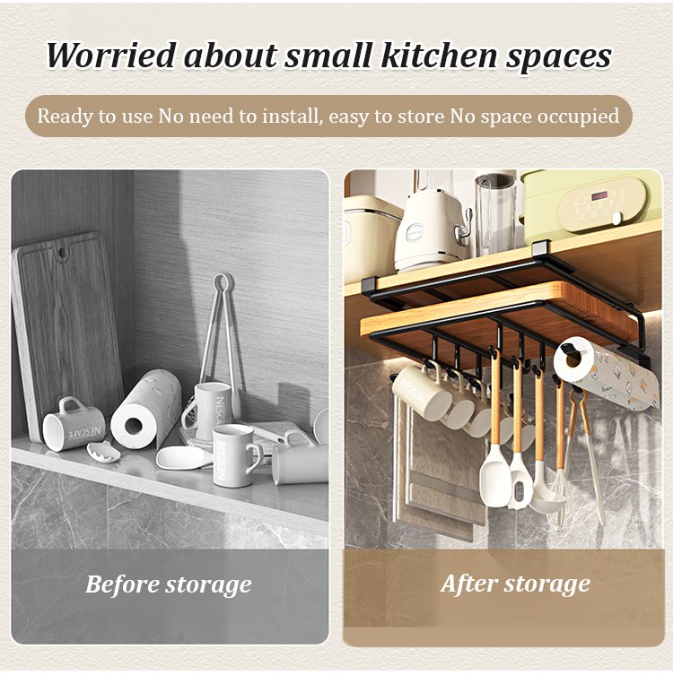 EASY INSTALLATION: Just hang it under your cabinet, and you’ll have it set up in no time. No complicated tools are required, making it a hassle-free addition to your kitchen organization.