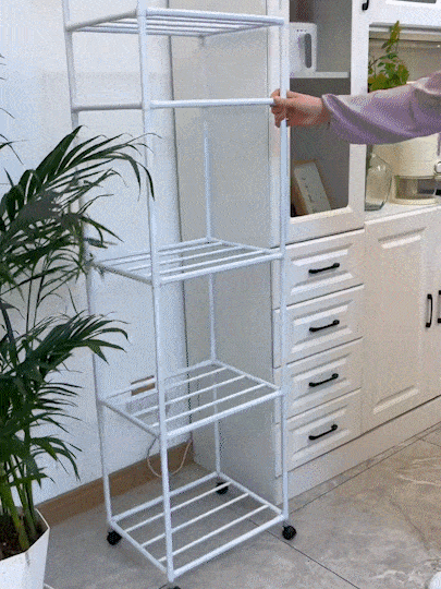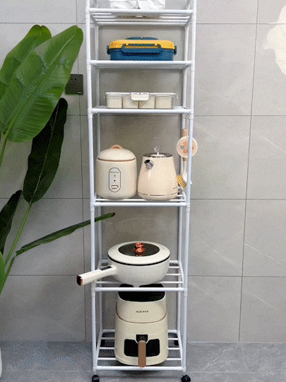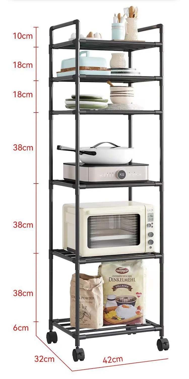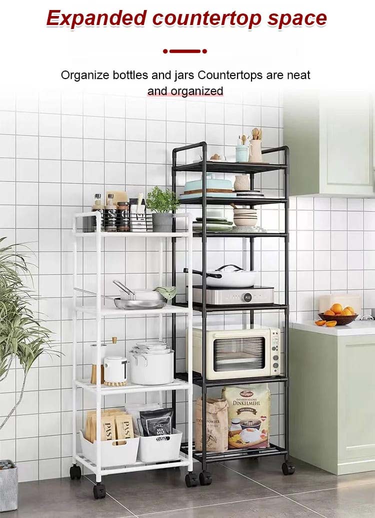 MULTI-TIER AND SPACE-SAVING DESIGN: The storage shelf offers 4/5/6 tiers (depending on the size selected) to suit your storage needs. The compact, mobile design maximizes floor or countertop space without sacrificing storage capacity, making it an ideal solution for small apartments, kitchens, bathrooms, laundry rooms, offices, or garages.