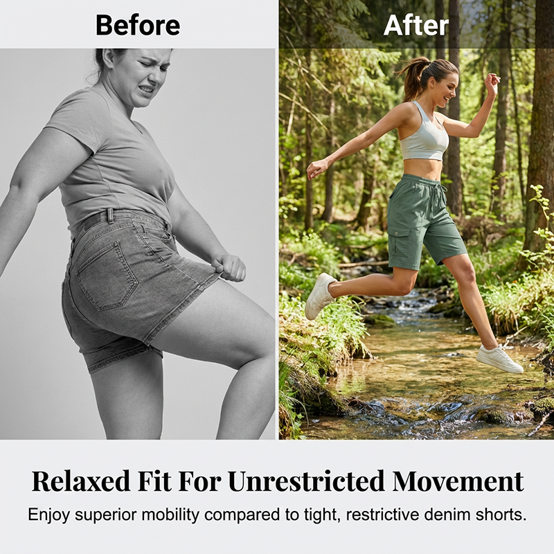 RELAXED FIT FOR UNRESTRICTED MOVEMENT - Ditch the stiff fabrics. Our cargo shorts feature a relaxed, ergonomic cut that provides exceptional freedom of movement, making them your go-to choice for active days.